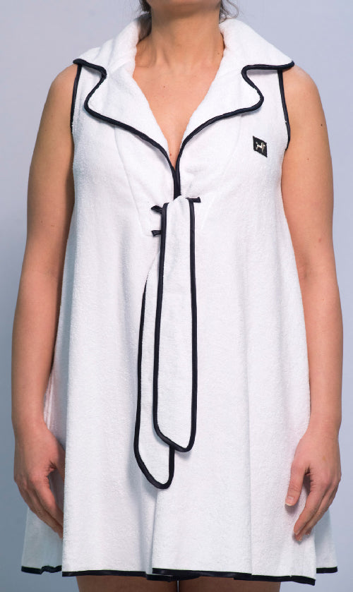 Copricostume Mediterraneo Bougainville Moon bianco con bordino blu