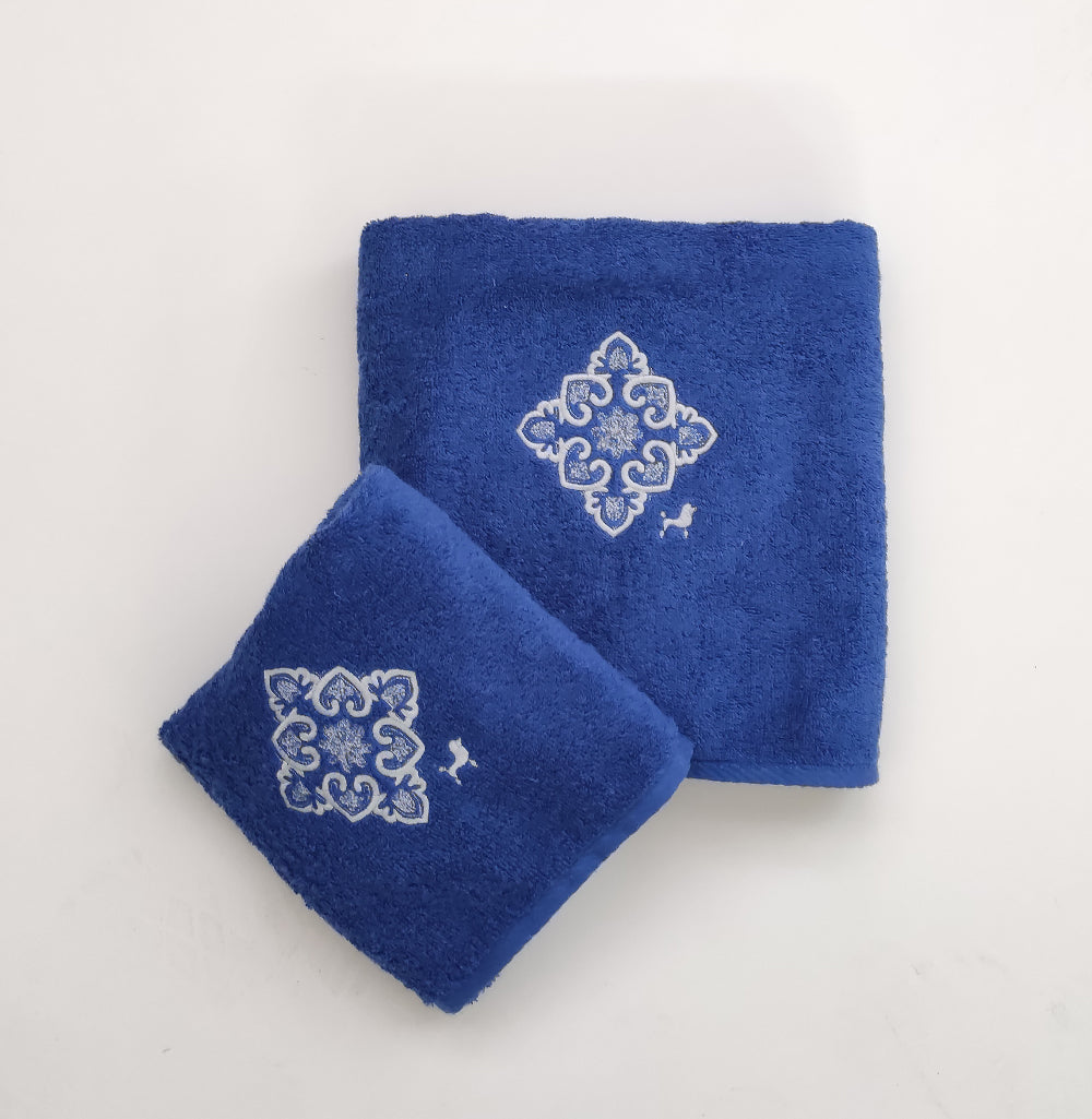 Telo doccia 100%cotone Mediterraneo con ricamo maioliche